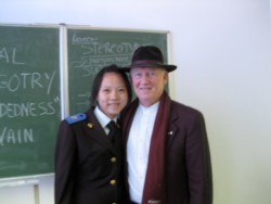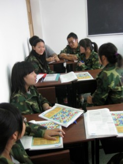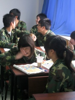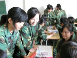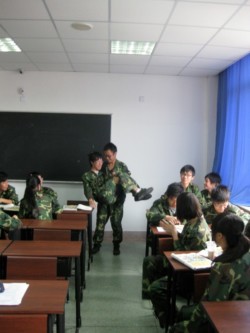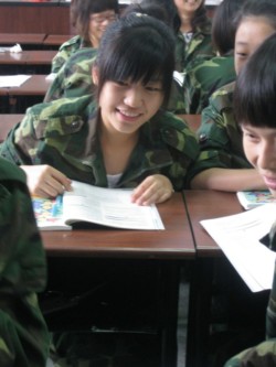 I can still remember my shock when I arrived at my first class, lo and behold stiffly sitting in their seats were 30 students in military fatigues (my uniformed students changed back and forth from field fatigues to dress blues, you know, like uniforms you see Customs Officiers at the airport wearing). I was immediately transported to my first teaching experience in the Army where I was a Training Officer. It was eerie at first but I soon got used to it.