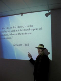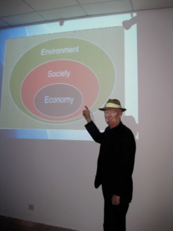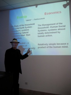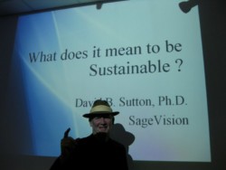 The initial interview with the Chairman went well and I did not mention dancing (although I couldn’t help but wonder what it would be like to dance with this charming lady). What was left to do was for me to visit the campus and, as a test I suppose, to give a public lecture for the campus wide audience. So in the large auditorium I gave my standard “What does Sustainabilty Mean ” lecture and slide show. I was impressed with the responsiveness of the audience (it turns out that those in the front rows that did most of the talking were members of the faculty). It felt good to be back in an academic atmosphere.